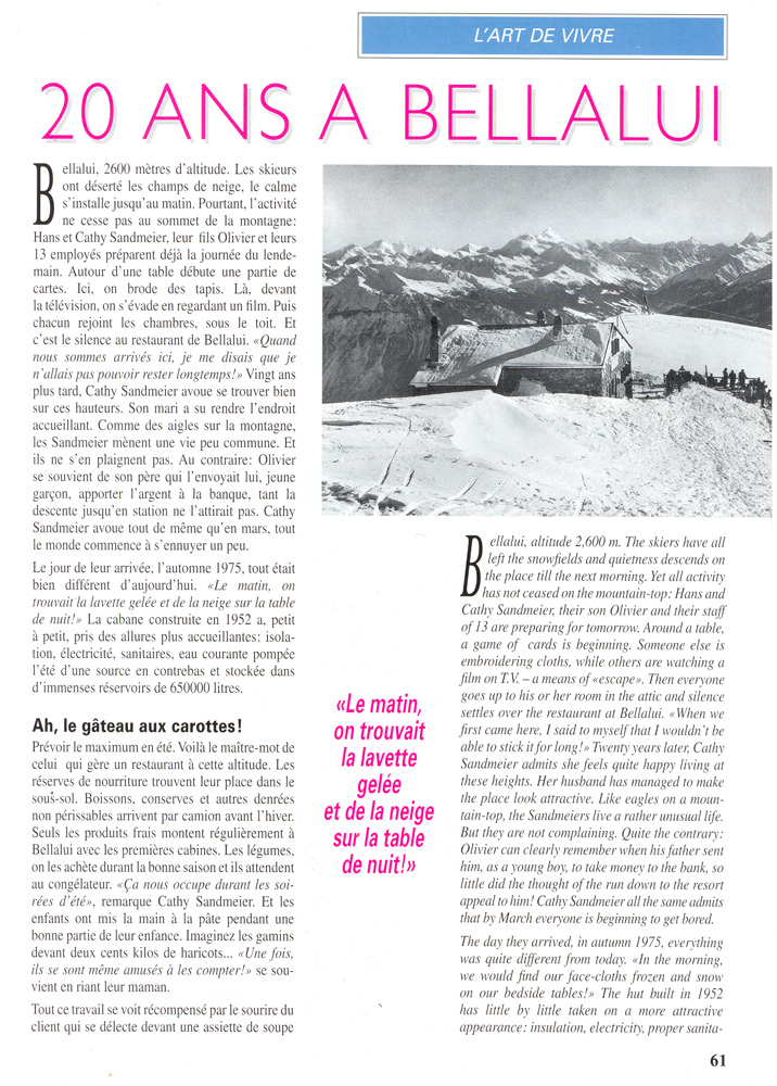 Article paru dans le revue " la vie à Crans-Montana " Saison Hiver 1996